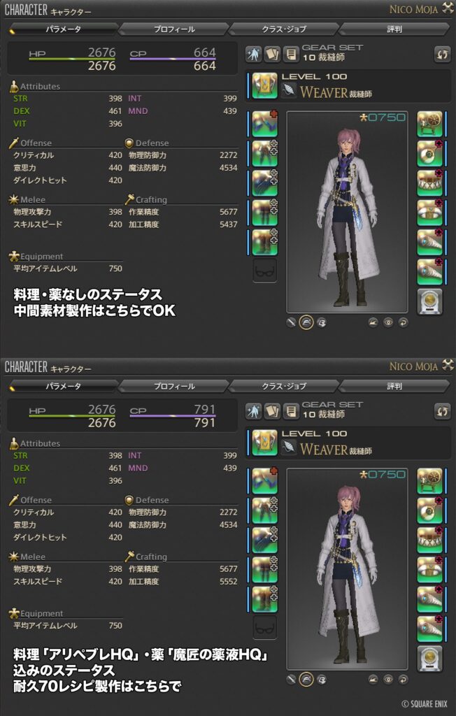 Patch7.4対応 コートリーラヴァー装備(工数10040)・中間素材(工数5622)製作マクロ・・・